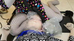 Nana Put on a gas mask . Touch hugs cute dolls. ...